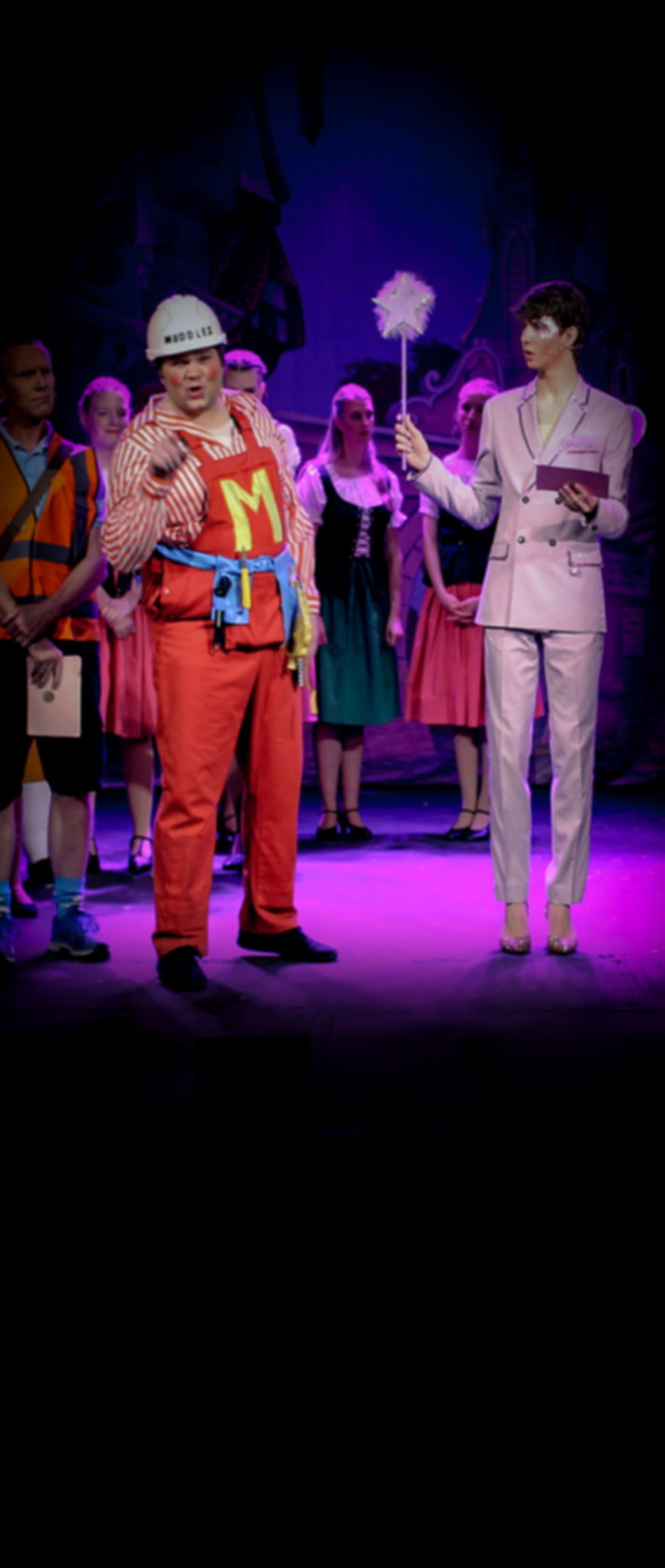 The costumes were excellent; they fitted well, were colourful, and suited the characters and their social standing. The regal royal outfits, the gorgeous attire, the appropriately dressed Muddles, the palace messengers dressed as postmen, the colour-coded Rainbow Fairies, the debonaire Prince, Nurse Hettie Harpic’s zany outfits, the slightly unusual witches' costumes, and the stylish suit for Fairy Lilac. Make-up looked good, and hairstyles and wigs all added to the visual effect of the show.